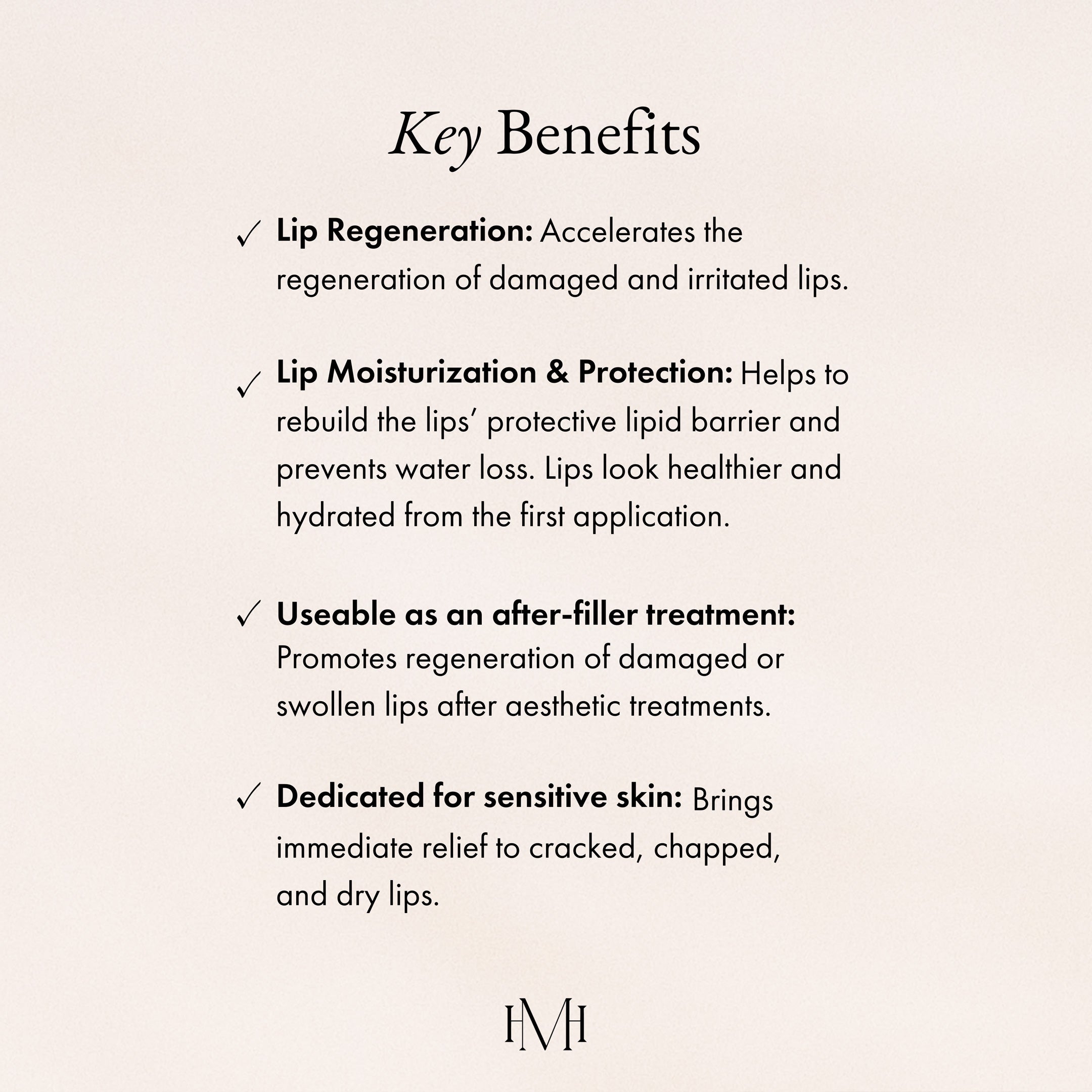 - Accelerating the regeneration of damaged and irritated lips.