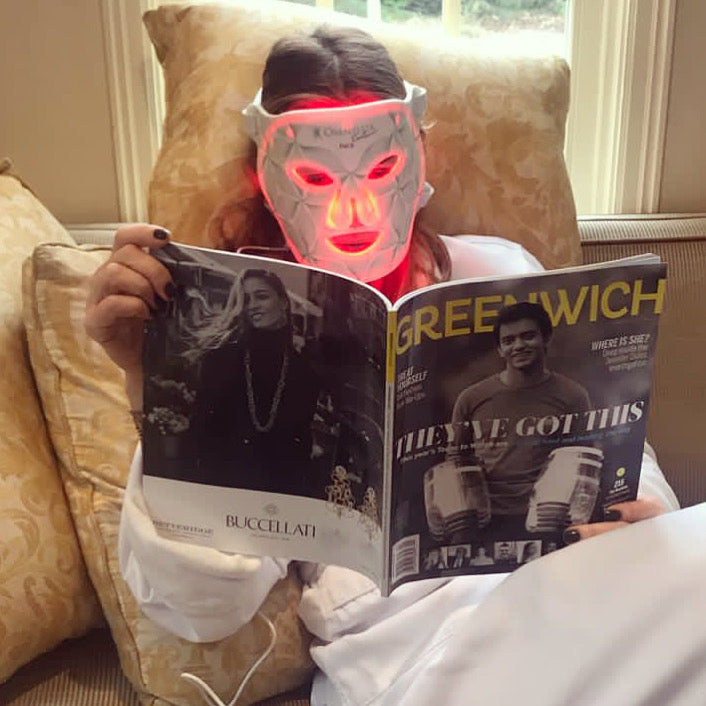 - Next, put on the Omnilux Contour Mask to help all of the active ingredients to penetrate the skin.