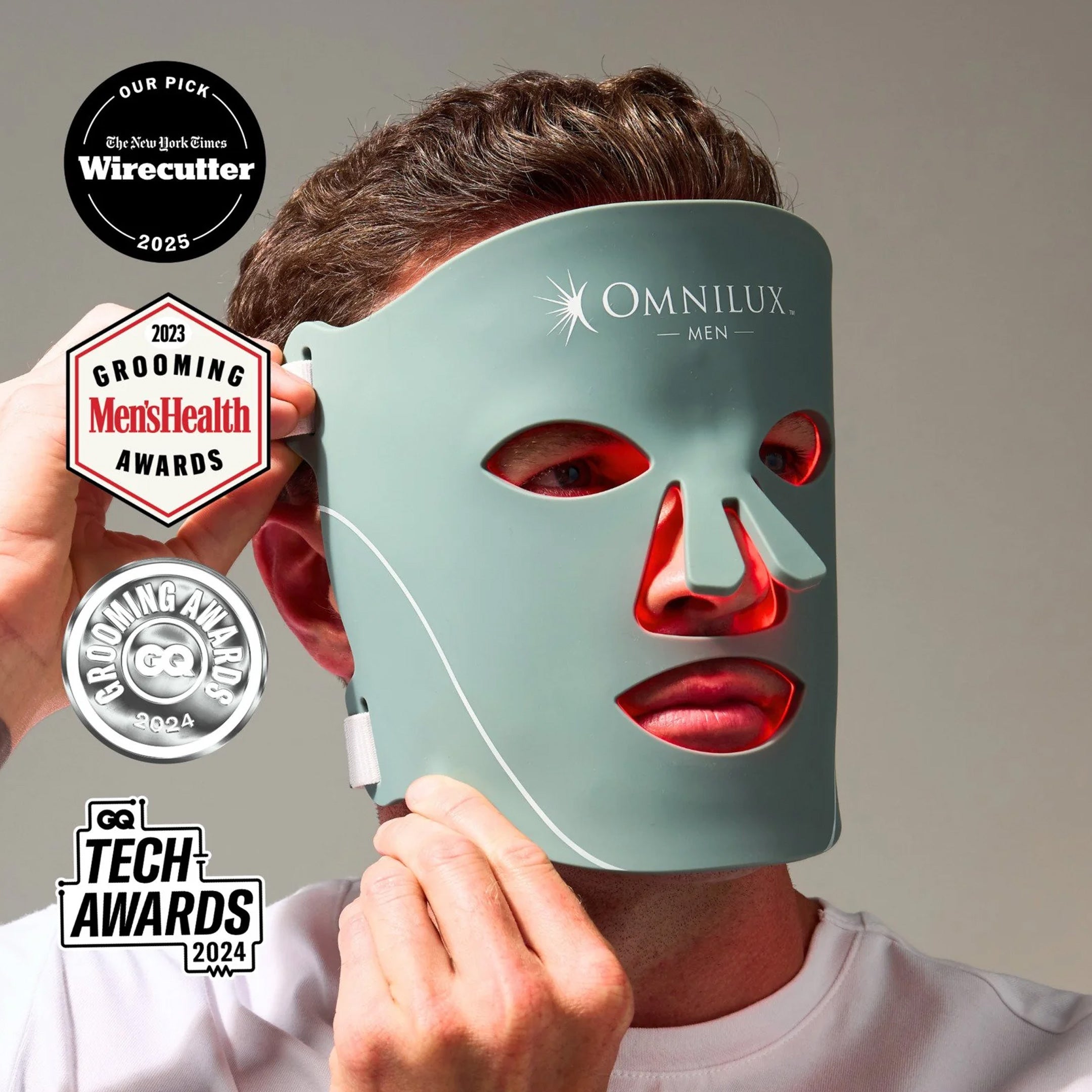 FDA-cleared, dermatologist-recommended red light therapy device with clinically proven results for men's skin rejuvenation.